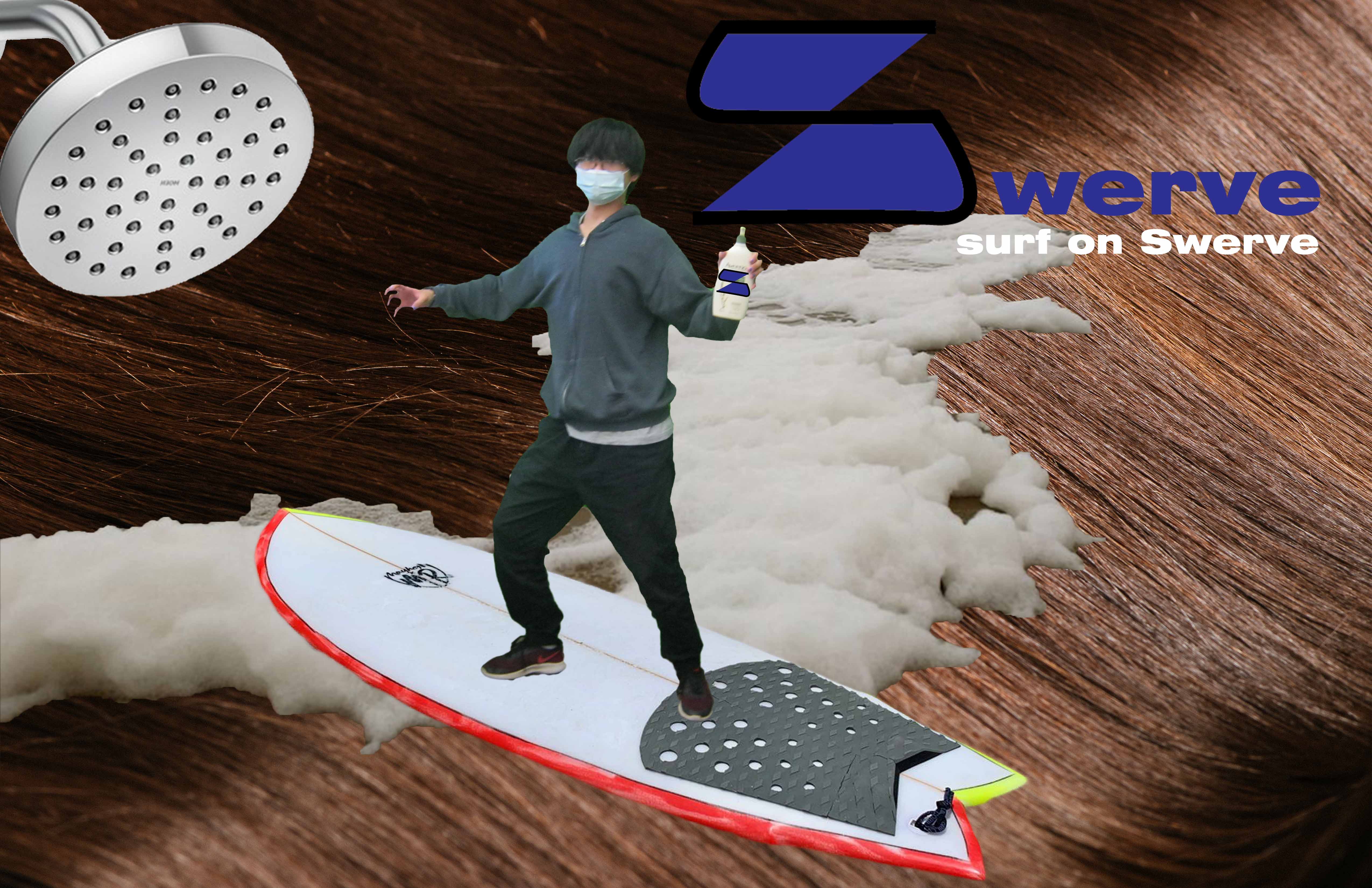 The basic theme of the ad is surfing reimagined as happening on wavy hair. Just like how surfers can glide and fly upon smooth and curving waves, Swerve shampoo allows your hair to resemble those waves - smooth and curvy.