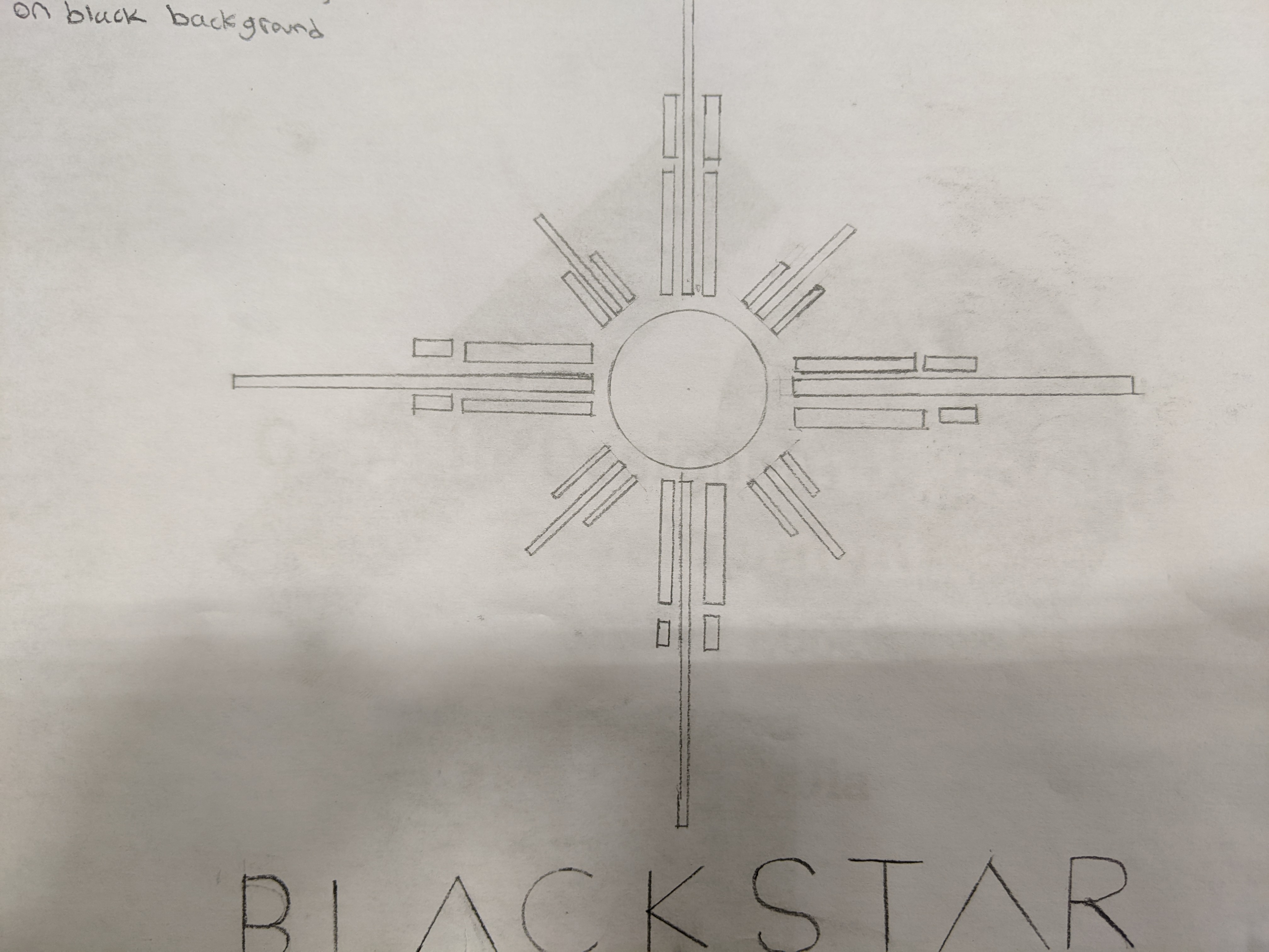 I took inspiration from Art Deco design and the principle of negative space, and created an unique four-pointed star emblematic of Blackstar. Once I was done with the sketching process, I experimented with softening the design in Illustrator, creating soft curves in order to compliment the circular design. Ultimately I created a "Blackstar" that was both mysterious and powerful, with outbound rays striking enough to mesmerize the viewer.