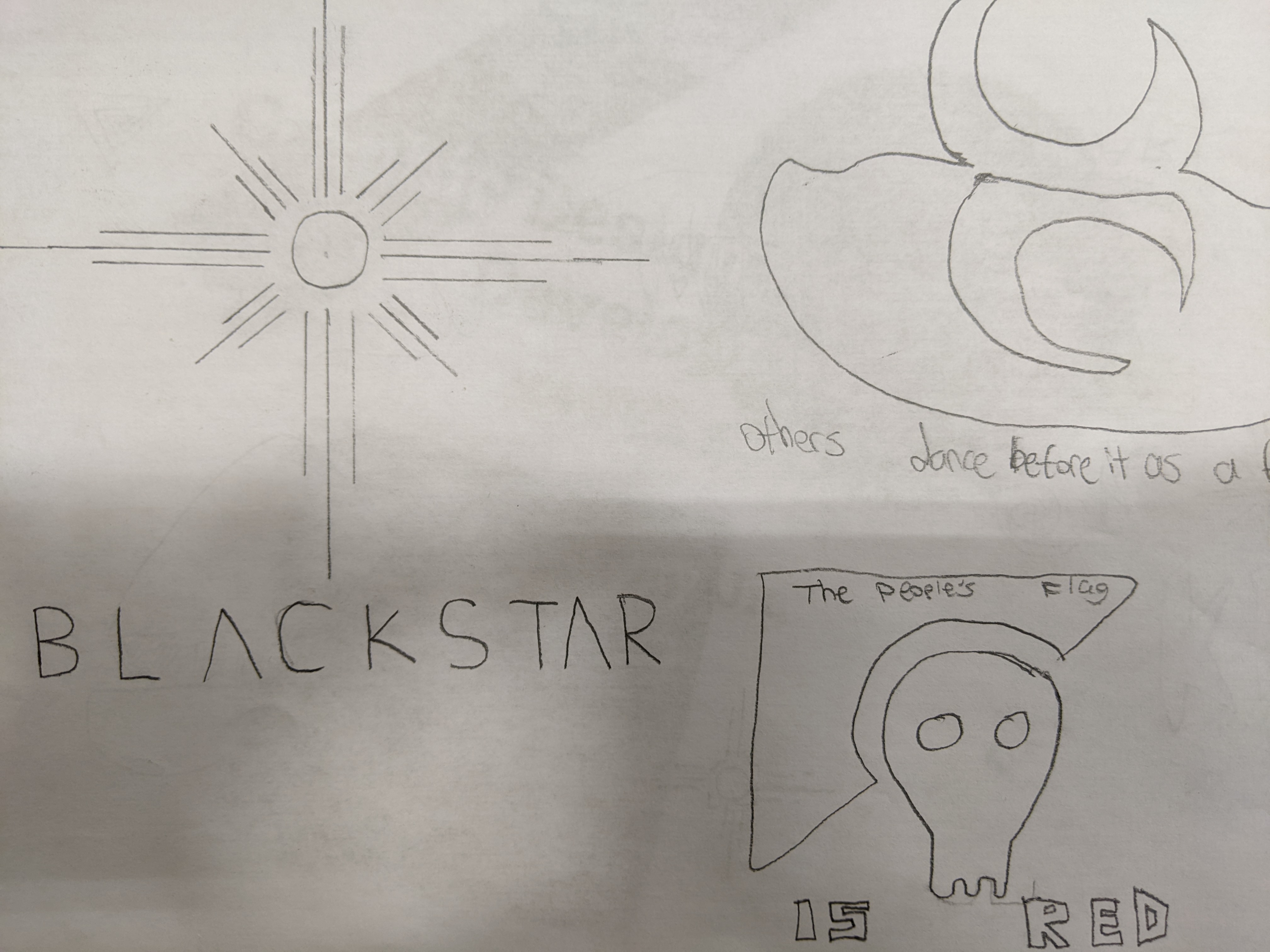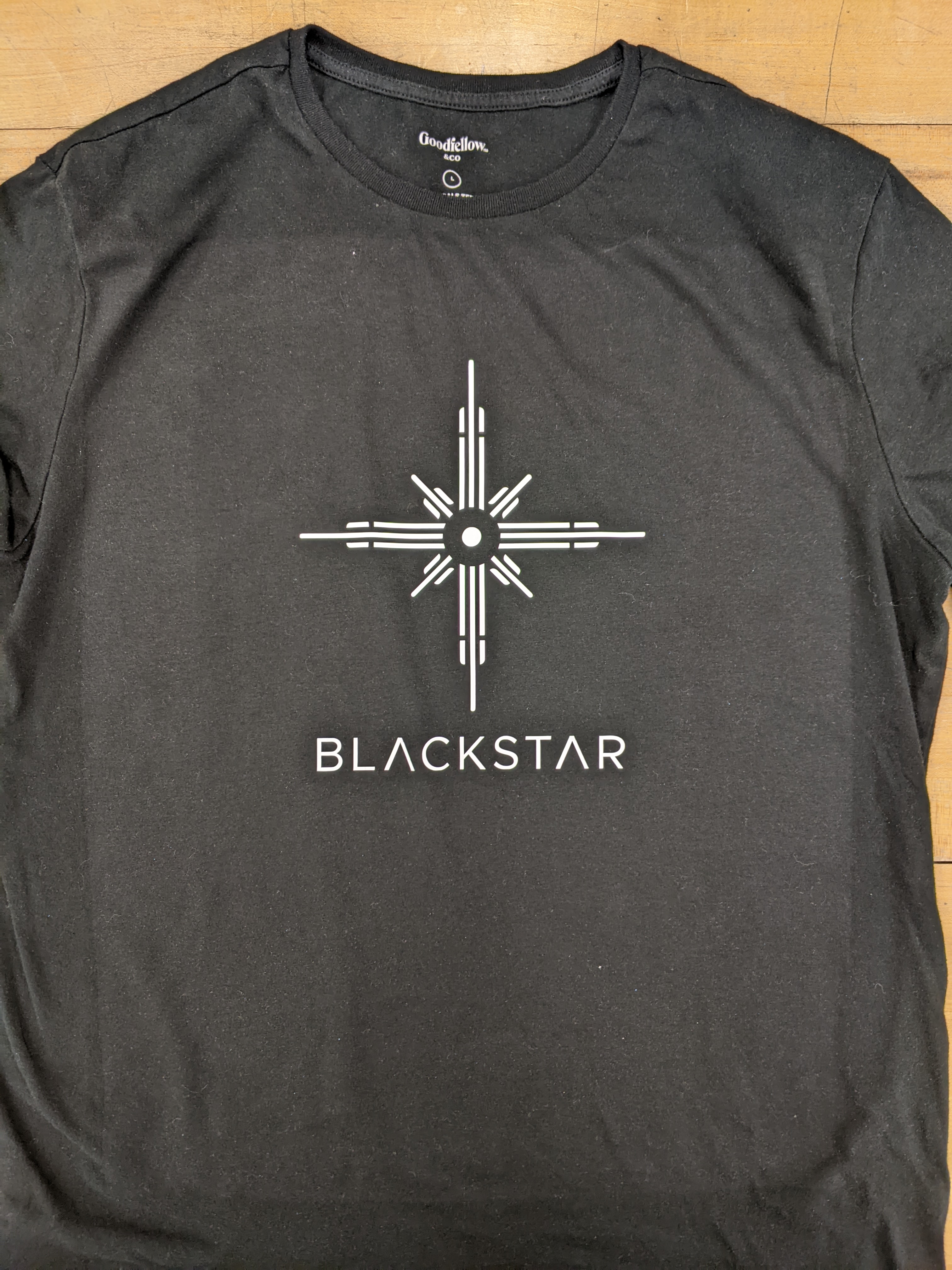 In the heat transfer vinyl project, I was tasked with creating a design that could be cut as a single colored vinyl and transferred unto a garment of my choice using the heat press. The design I choose to make was an icon representing a science fiction writing project I was currently working on called Blackstar. I brainstormed ways to transform this simple word, "Blackstar", into a striking monocolor icon.