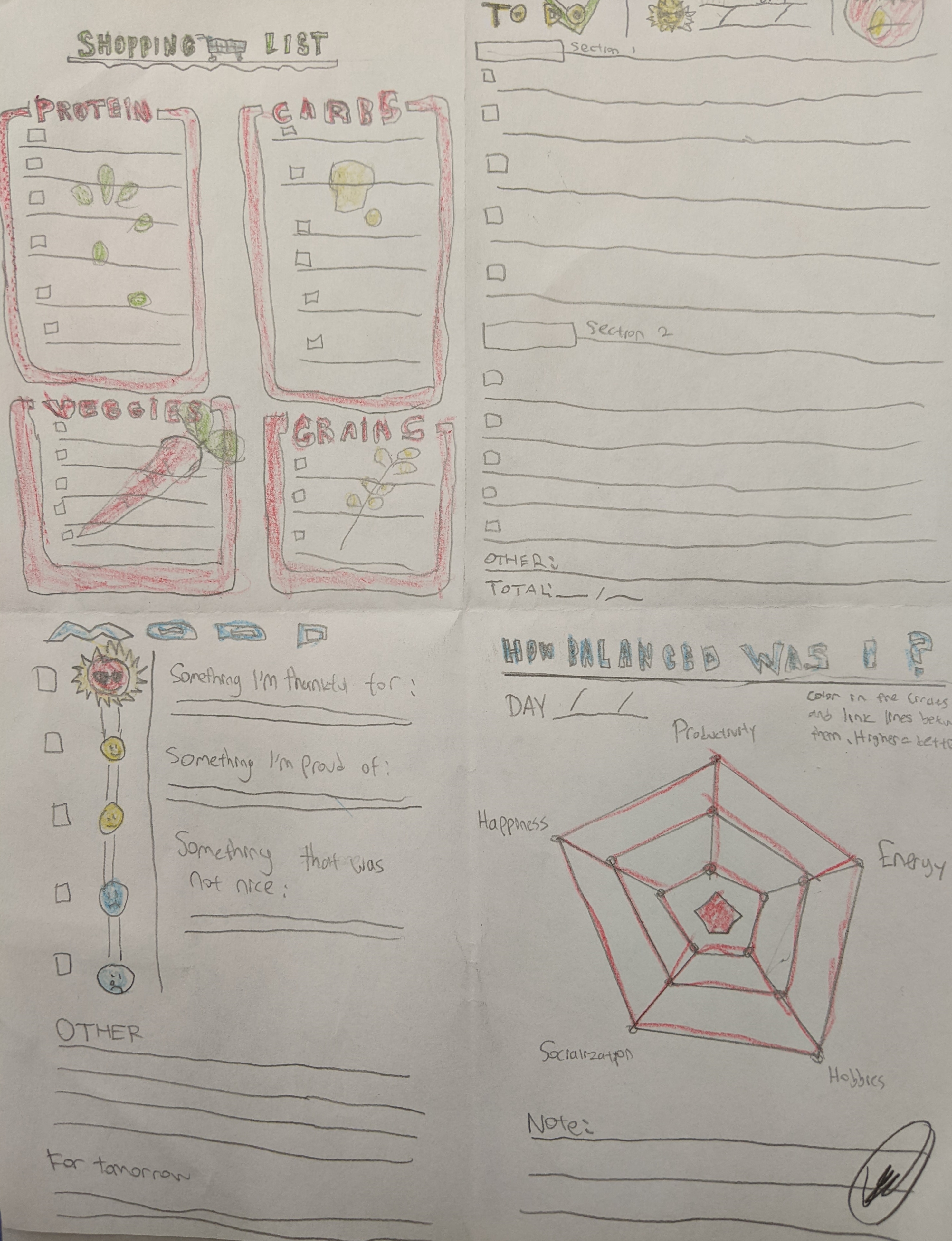 Notepad design was pretty fun. I've been trying to keep track of my life more recently, and this project came at an opportune time. We started the design process by sketching. What was special this time was that we only had a single round of sketches, which I liked since the multi-round sketching we did earlier in the year seemed redundant. Once we were done sketching, we designed the notepads in Illustrator and printed out a layout. We cut the layout using the hydraulic cutter and glued the pages together to make a proper notepad. The to-do notepad I made fell apart while I was glueing it, so I had to reapply the glue. Overall, I liked this project a lot.