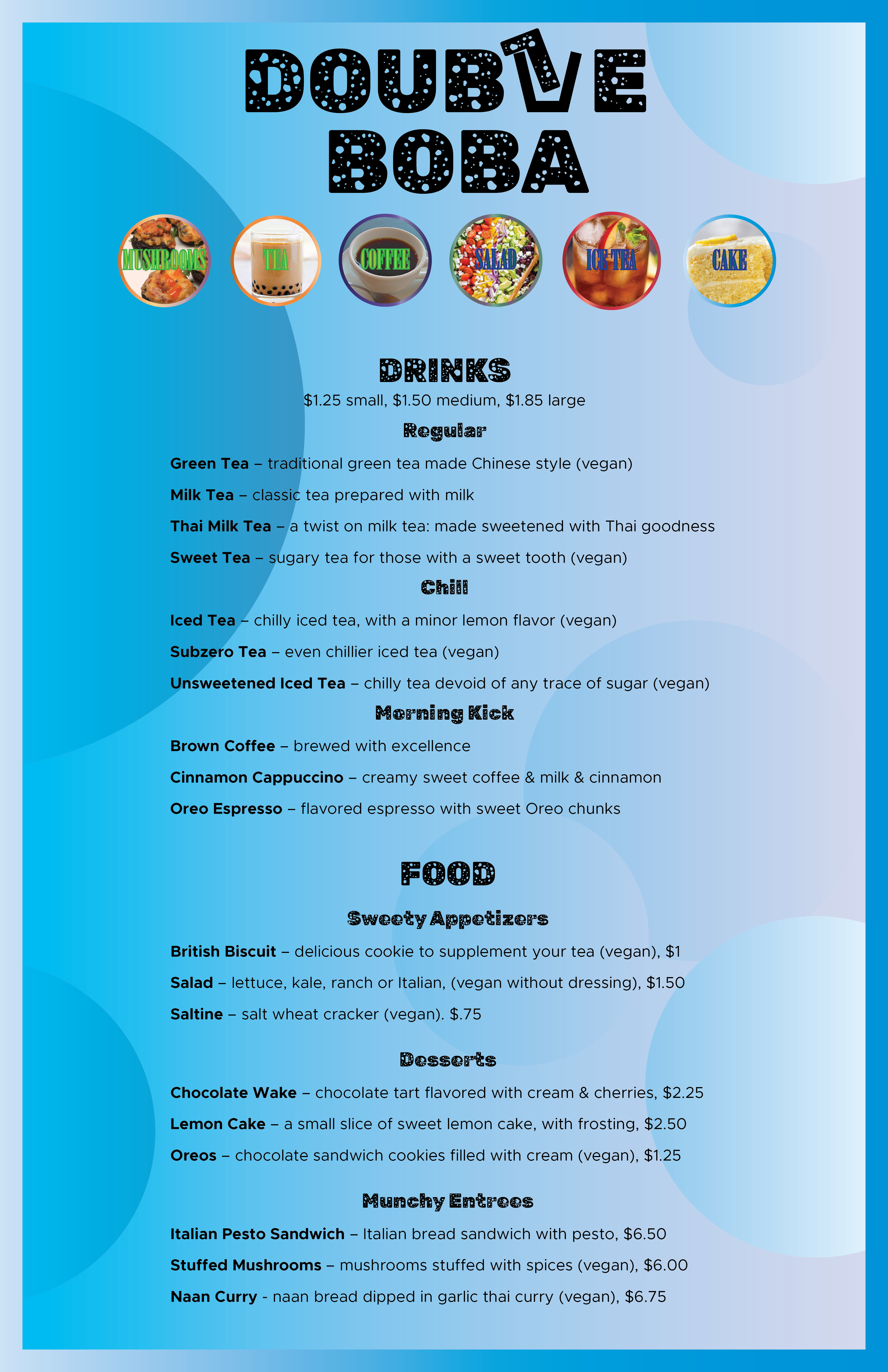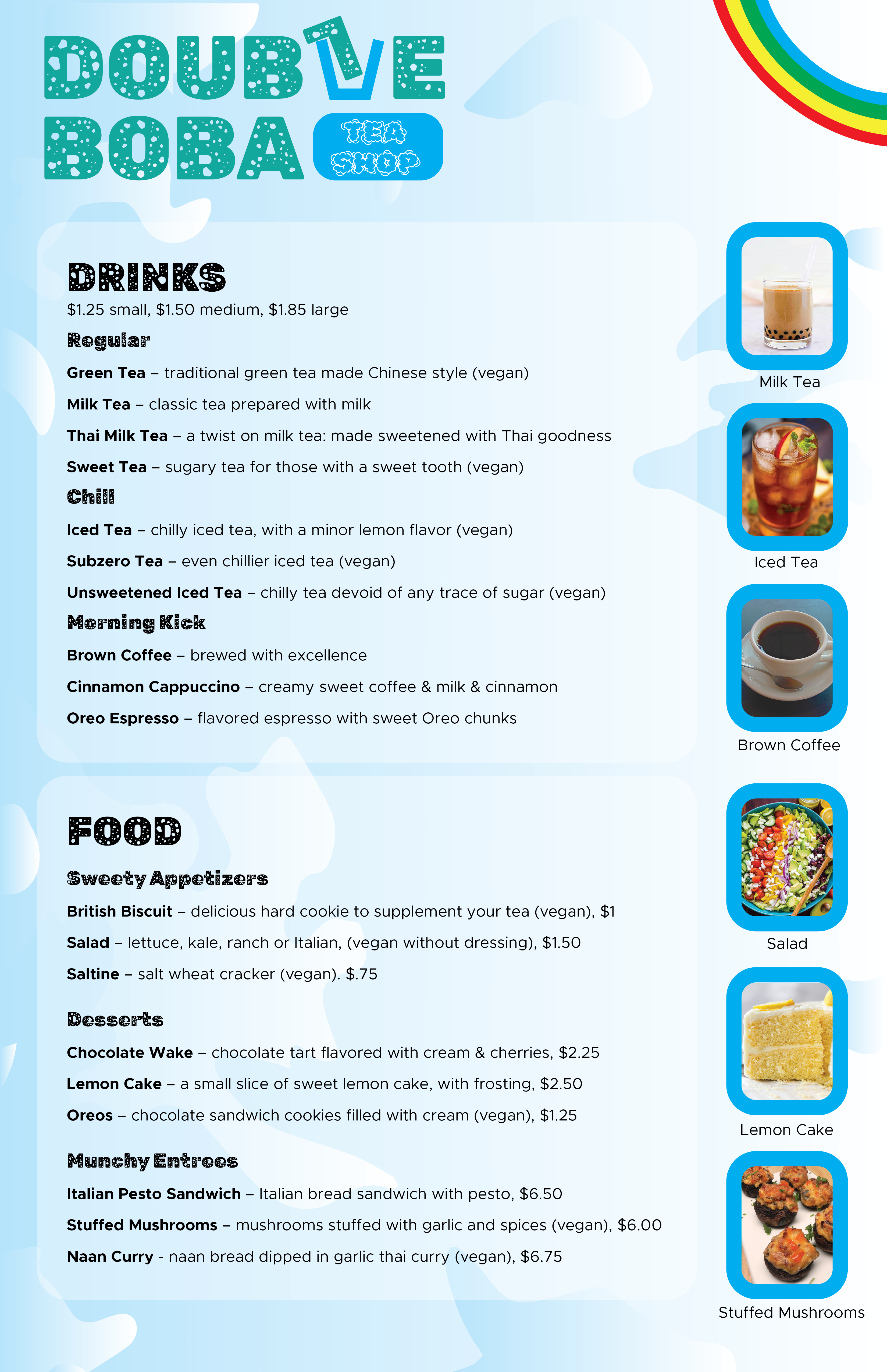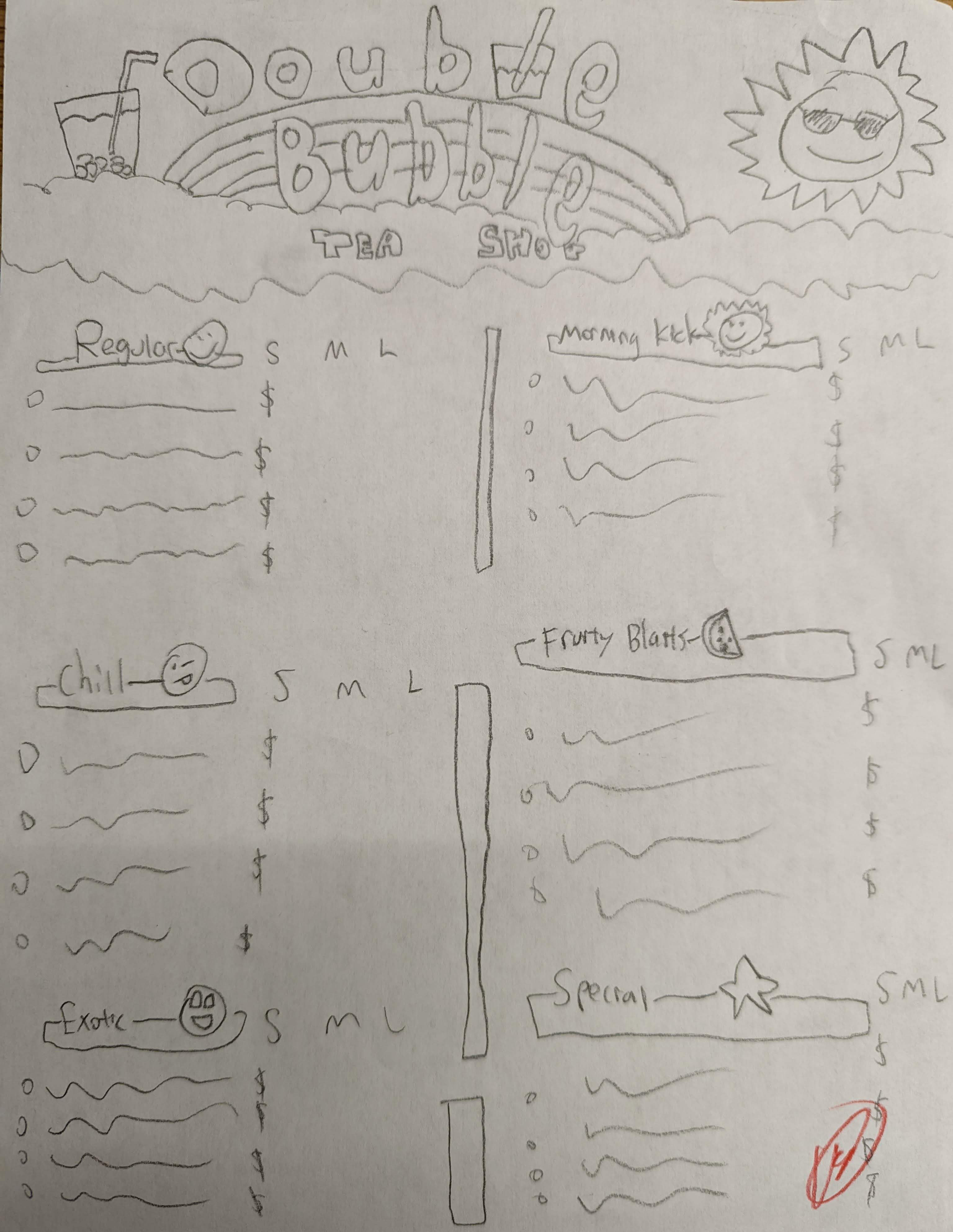 My inspiration for this establishment is all the boba tea places that I frequent. They all have really friendly décor and cute aesthetics, so I wanted to recreate that feeling.