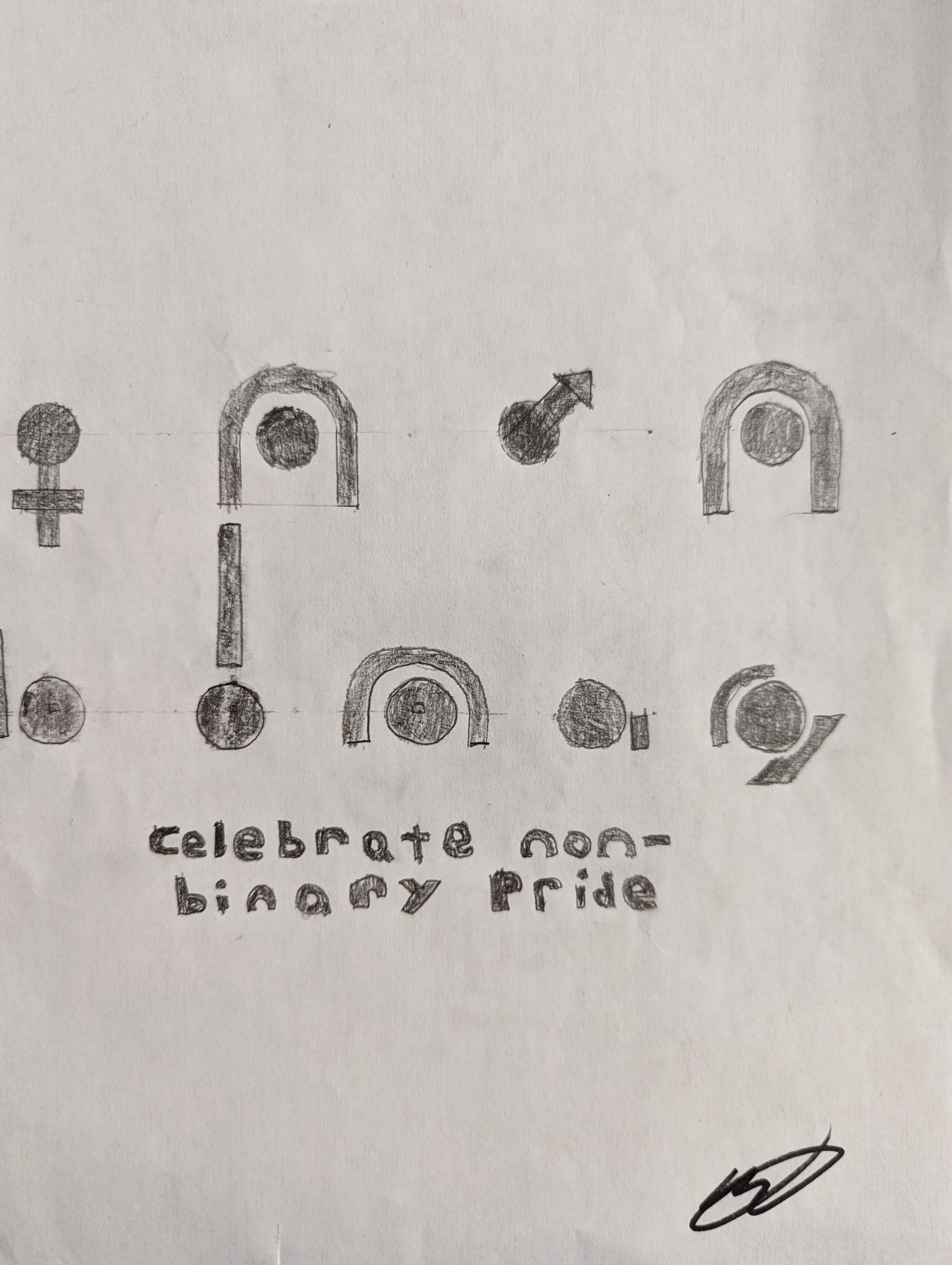 plan our designs. The requirement was for 10 sketches. I settled on the non-binary design as I liked the repeating circles of the design and
